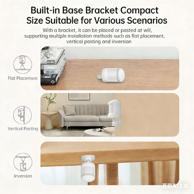 Your home's vigilant eye. This Motion Sensor acts as your 24/7 security guard. With its 150° wide field of view, it spots anyone entering the room and sends an alert to your phone instantly. Not just for security—link it to your smart bulbs to turn on the lights automatically when you walk into the kitchen or hallway. The adjustable stand lets you point it exactly where you need it, avoiding false alarms from pets on the floor.