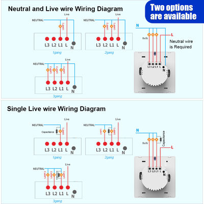 | Wiring Mode | Universal (No Neutral + Neutral/Live) |