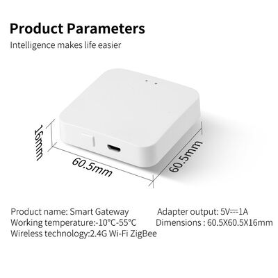 | Indicator Light | Two LEDs (Red for Wi-Fi, Blue for Zigbee/BLE) |
